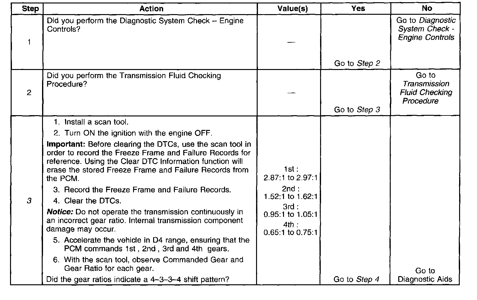 3. This step confirms that the PCM commanded all the shifts, but all the shifts did not occur.