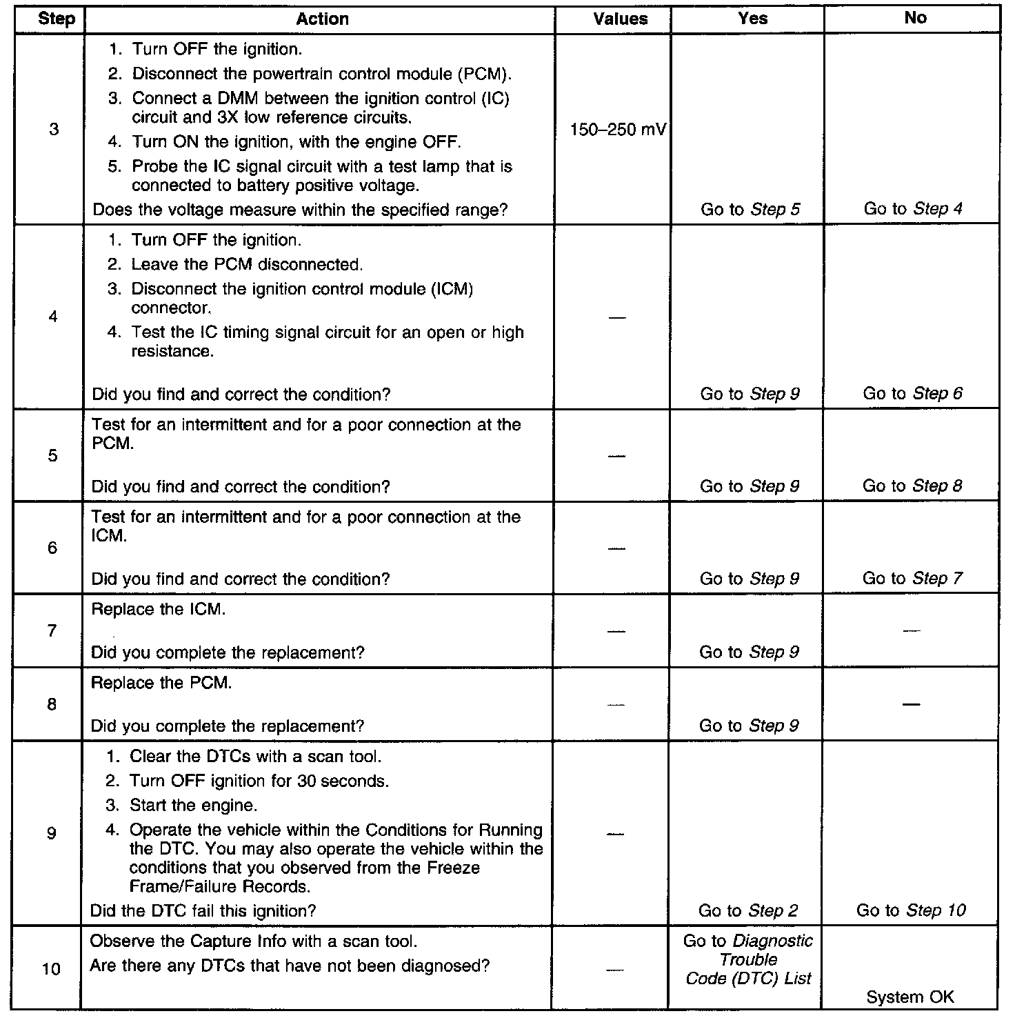 The engine will start and may run in bypass mode timing. If the condition is intermittent, refer to Intermittent Conditions Diagnostic Strategies