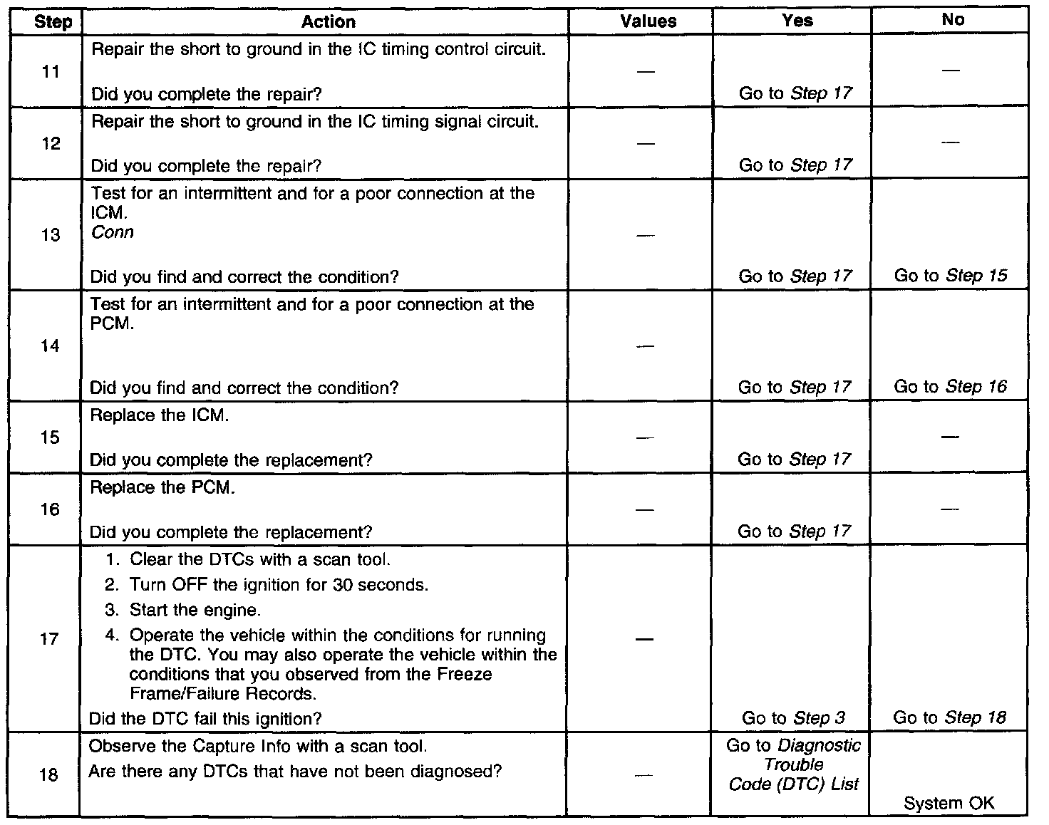 The PCM detects a short to voltage in the IC timing signal circuit.