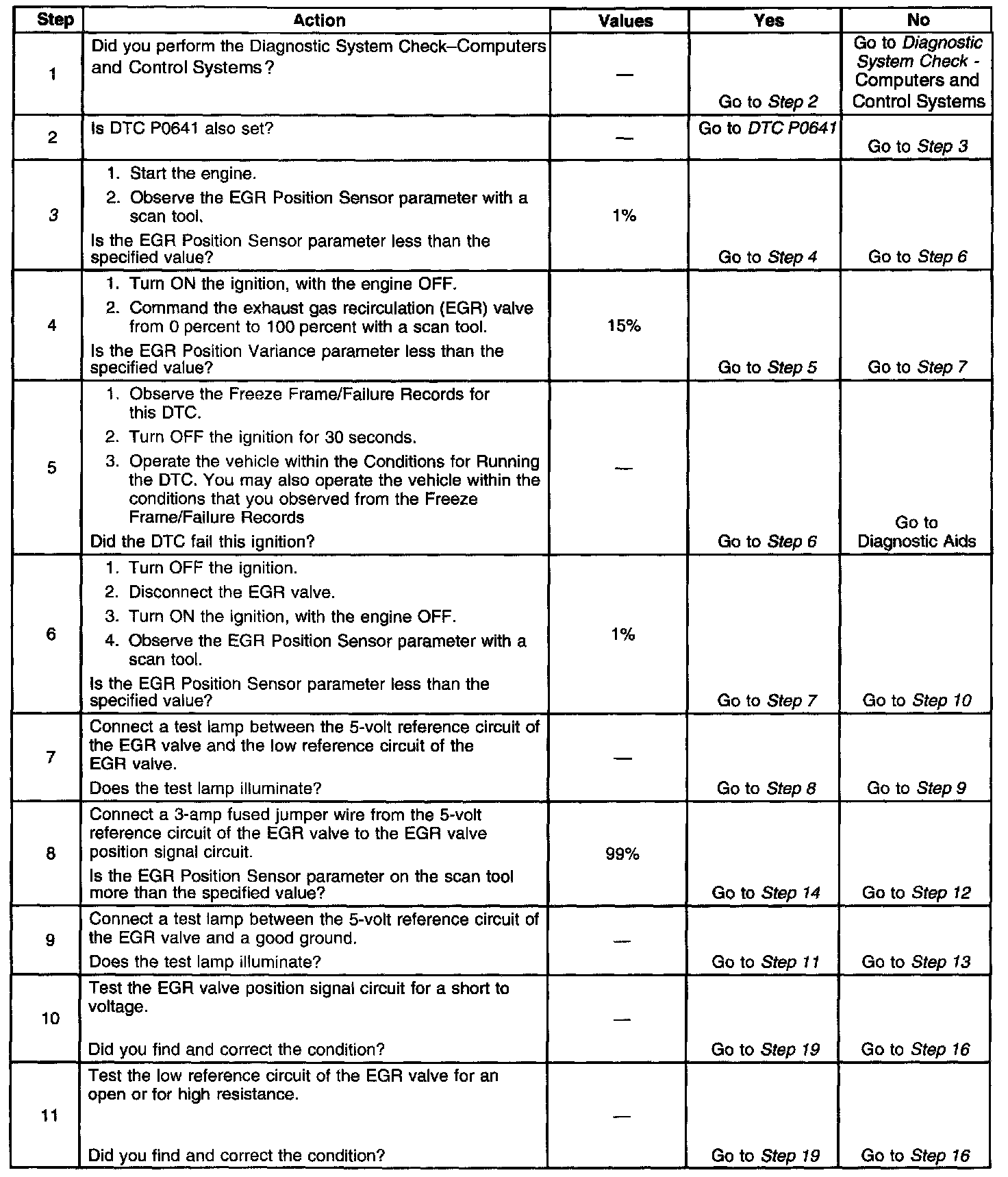 - The EGR Position Sensor parameter is more than 40 percent and is steady for 0.5 seconds after a test failure and before the next test will be run.