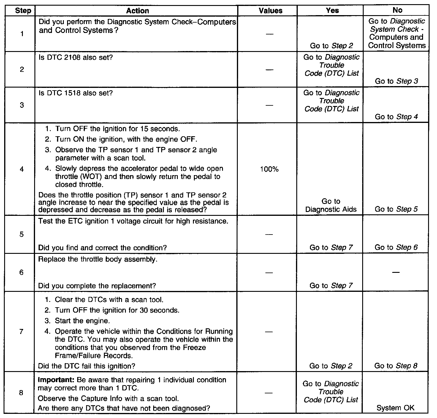 The commanded throttle position (TP), based on accelerator pedal position (APP), is compared to the actual throttle position. The TP values should be within a calibrated range of each other. The throttle actuator control (TAC) module monitors the commanded and actual throttle position. If the TAC module detects that the commanded and actual throttle positions are not within a calibrated range of each other a message is sent to the powertrain control module (PCM) across serial data and DTC P2101 is set.