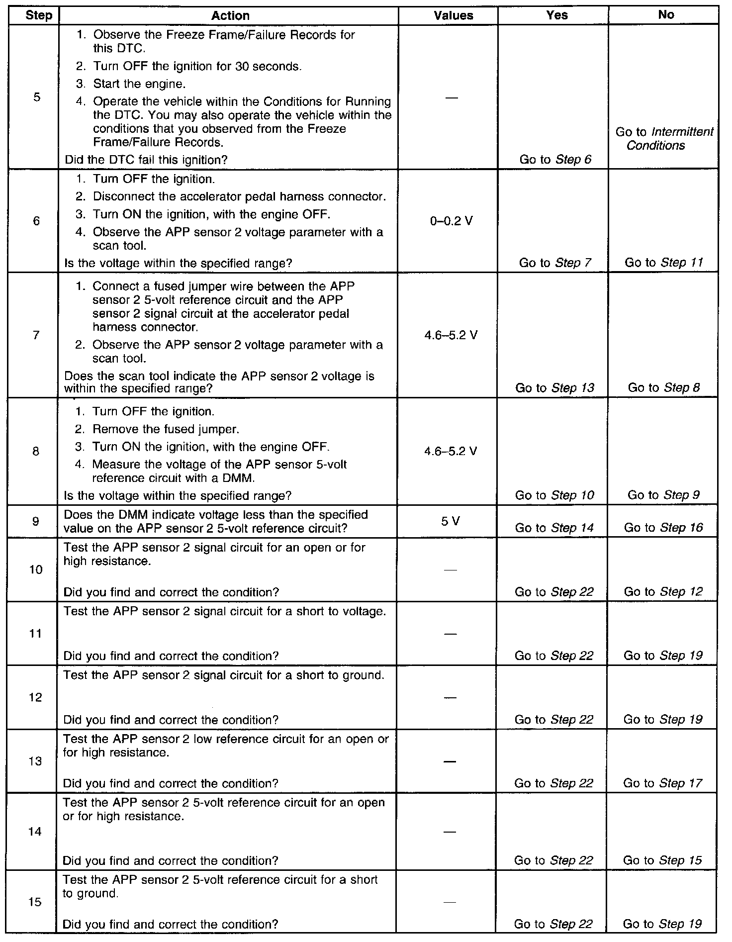 - The APP sensor 2 5-volt reference voltage is less than 4.54 volts or more than 5.21 volts.