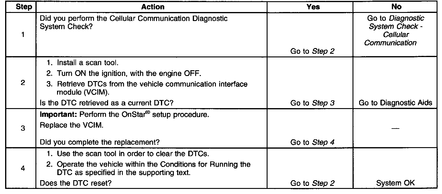 - If this DTC is retrieved as both a current and history DTC, replace the VCIM.