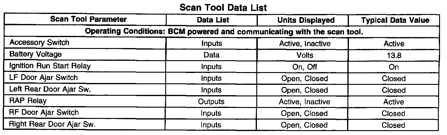 Scan Tool Data List: