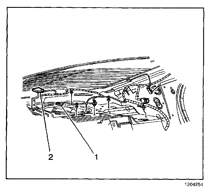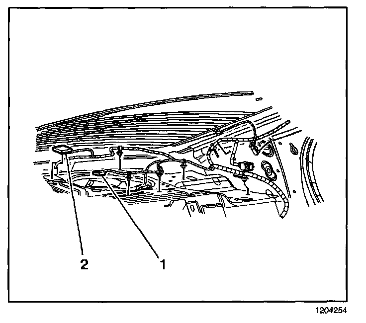 3. Install the navigation antenna (2) to the rear shelf surface.