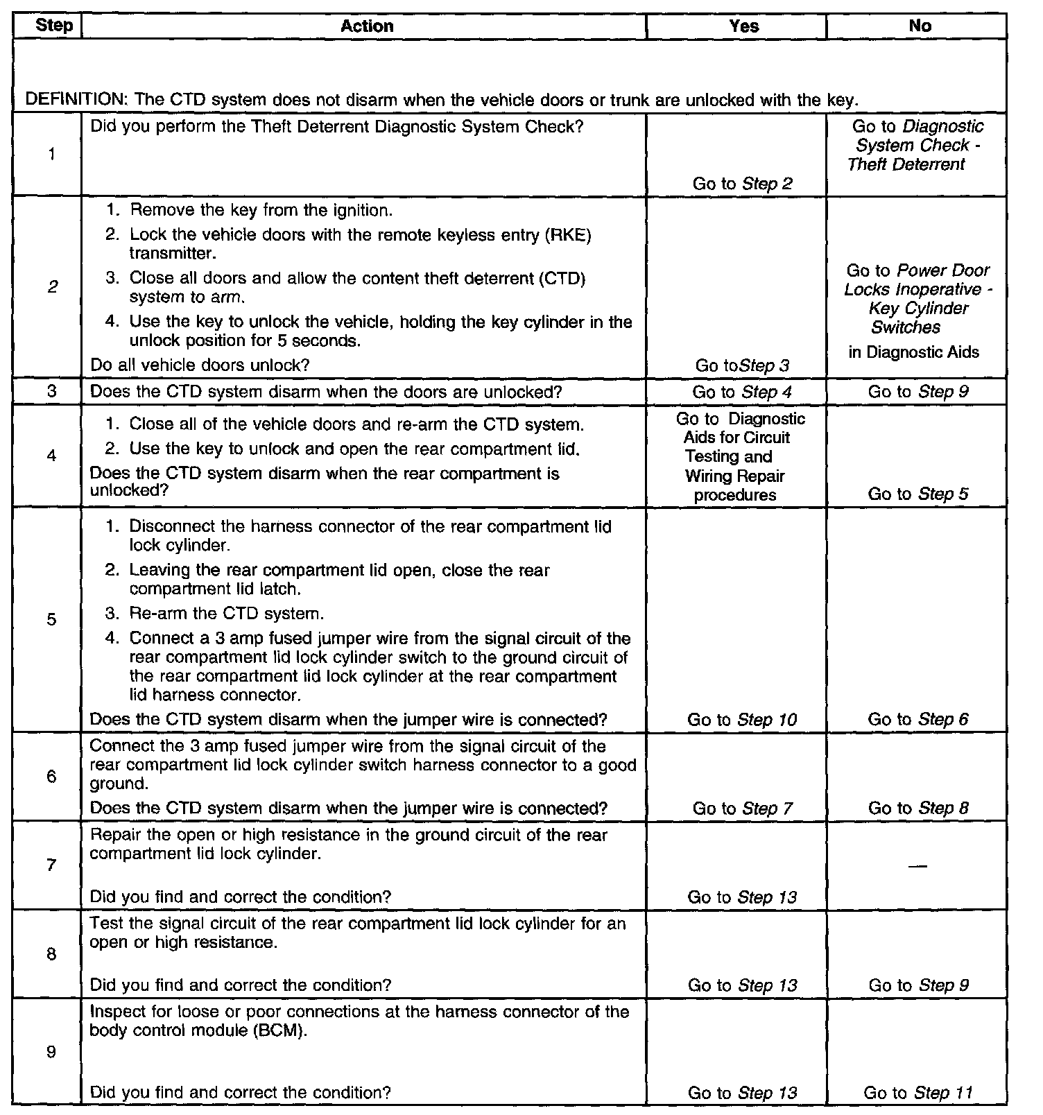 CONTENT THEFT DETERRENT (CTD) DOES NOT DISARM WITH KEY LOCKTEST DESCRIPTION