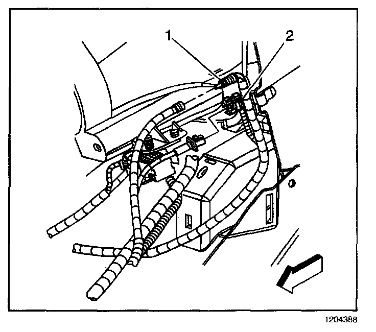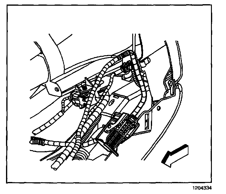 4. Disconnect the antenna extension cable from the communication interface module. The cable is on the passenger side of the module.