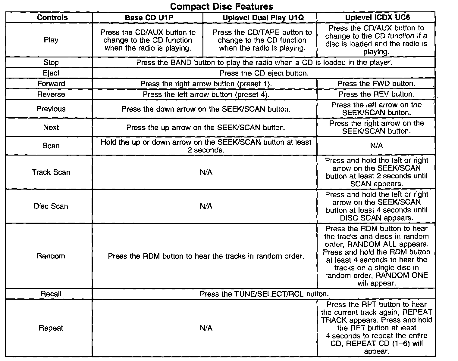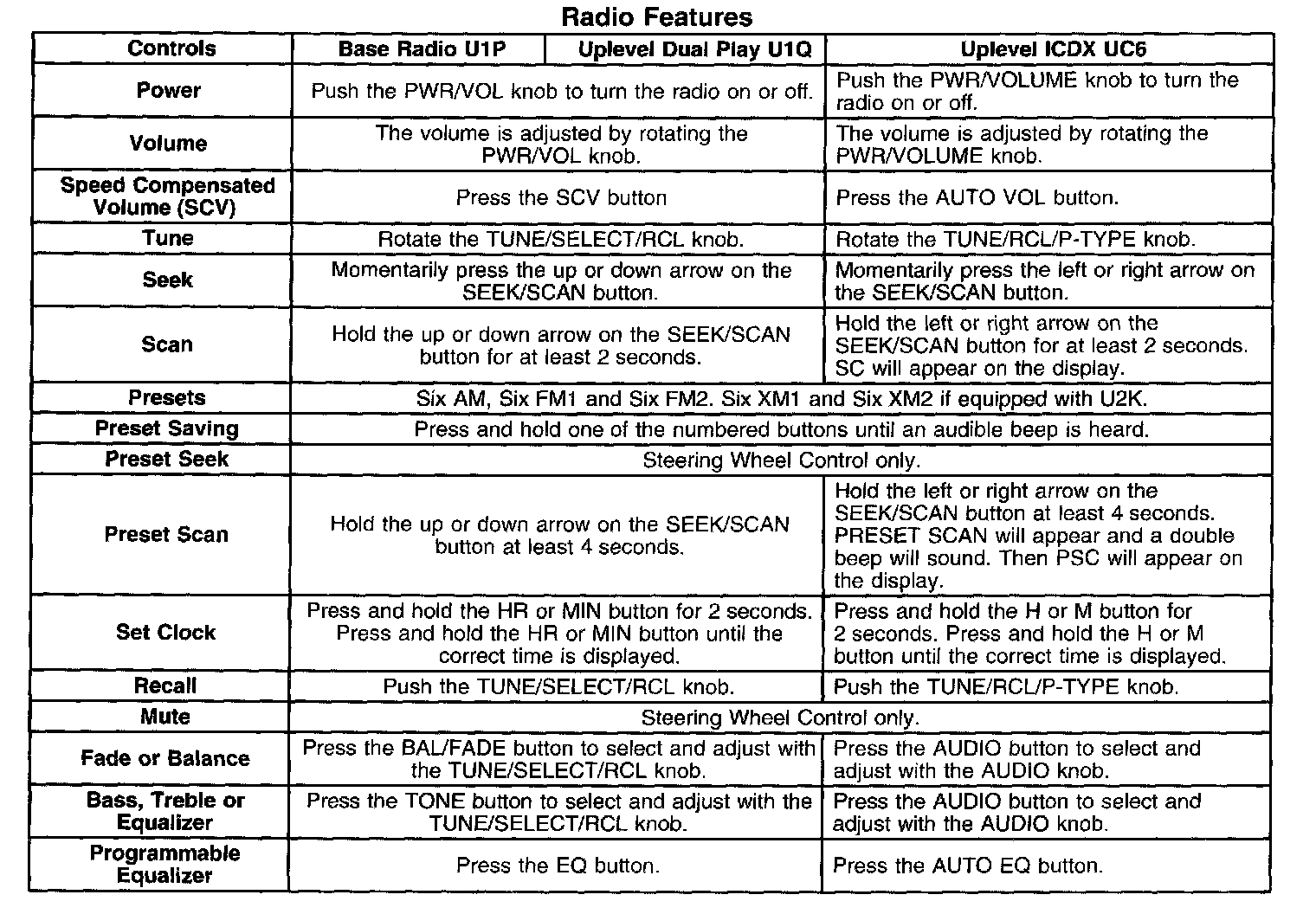 - Uplevel Radio (UC6) - AM/FM Stereo, Integral CD changer (ICDX) with Programmable Equalizer, and RDS