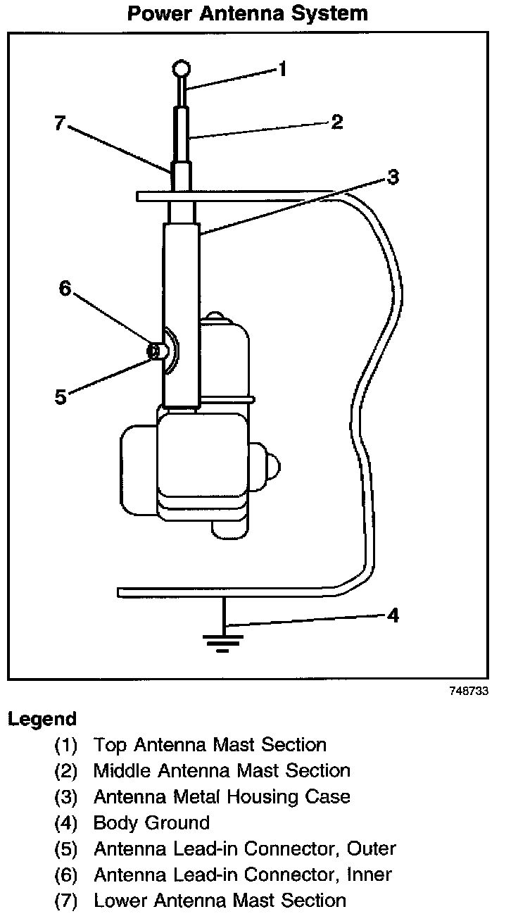 1. The radio antenna module is not grounded properly. The module grounding screws should be clean and tight. Measure the resistance from the antenna module base plate to a good ground. Resistance should be 0.20 ohms or less. Find and correct the condition if the resistance is out of specification.