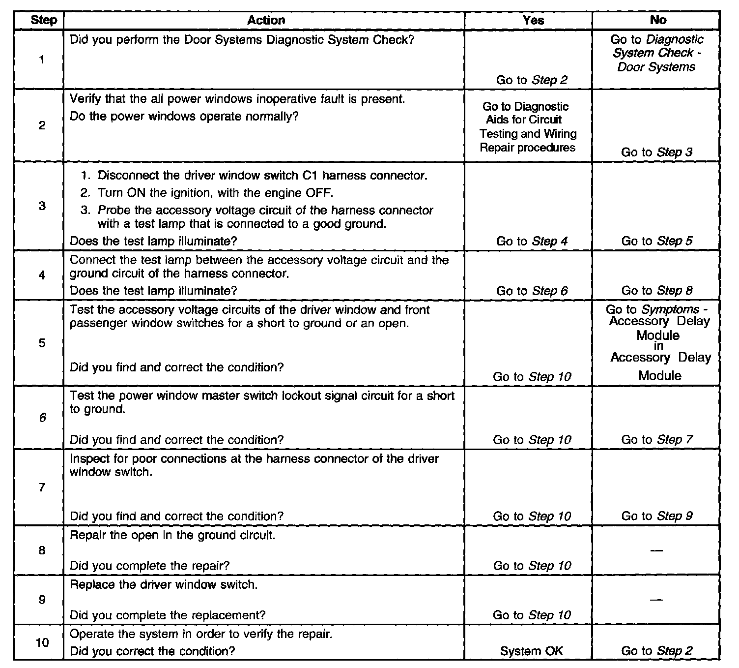 POWER WINDOWS INOPERATIVE - ALLTEST DESCRIPTION