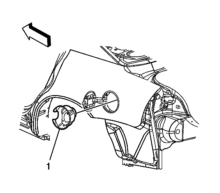 1. Install the fuel filler pocket (1) to the quarter panel.