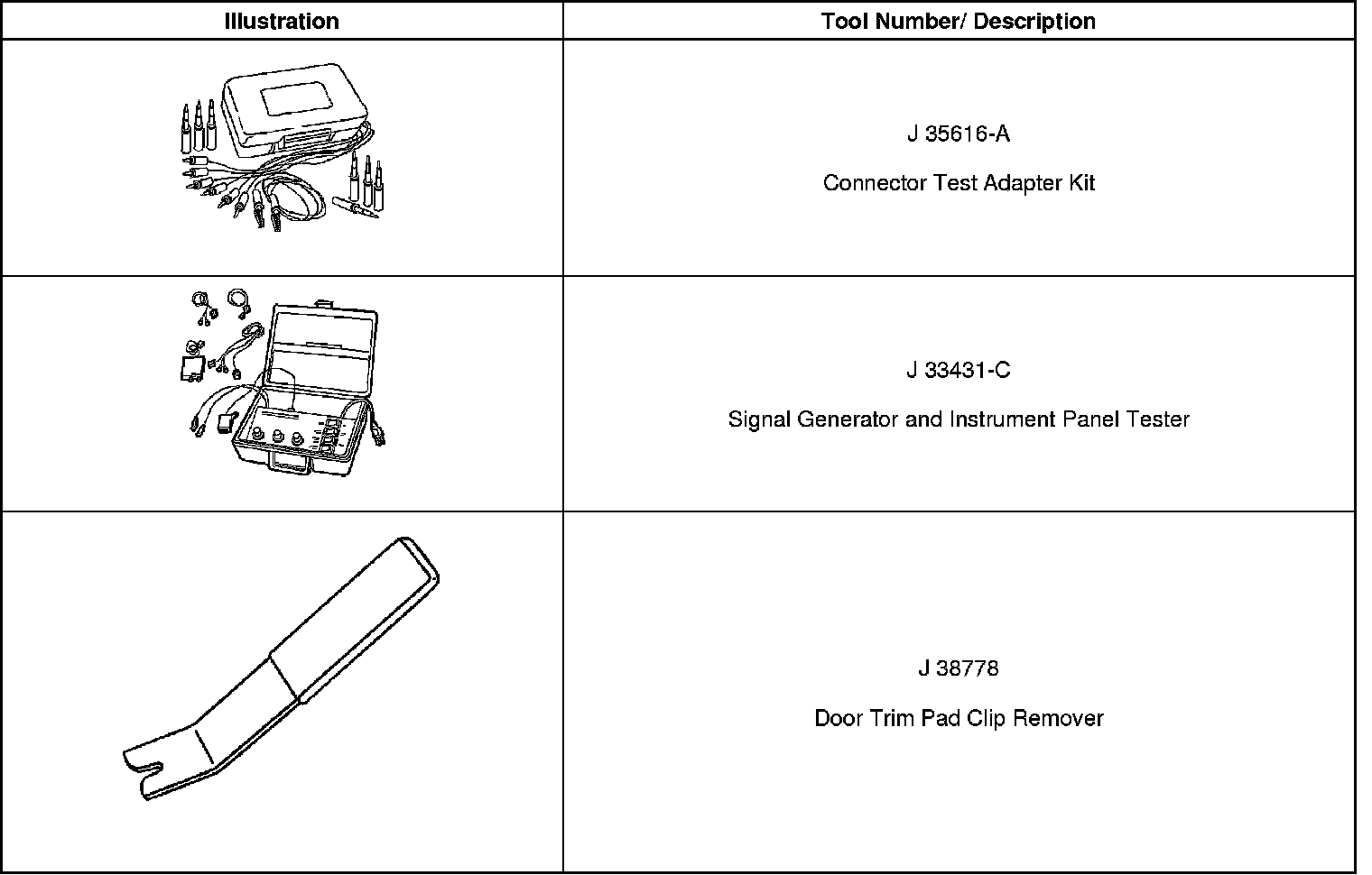 Dashboard / Instrument Panel: Tools and Equipment