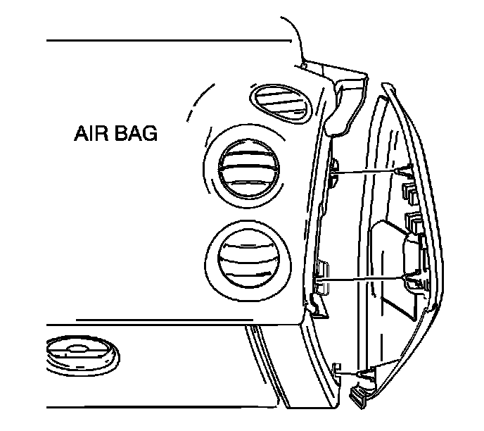 7. Pull the I/P accessory trim plate rearward slightly for access to the I/P inboard trim plate. Refer to Trim Plate Replacement - Instrument Panel (I/P) Accessory (Instrument Panel (IP) - Accessory Trim Plate Replacement) .