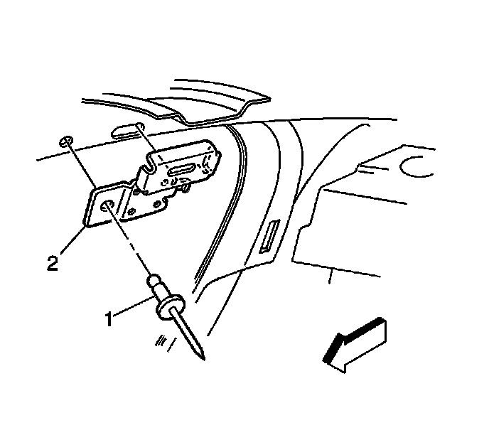 2. Install the rivet (1) on the retaining clip (2).