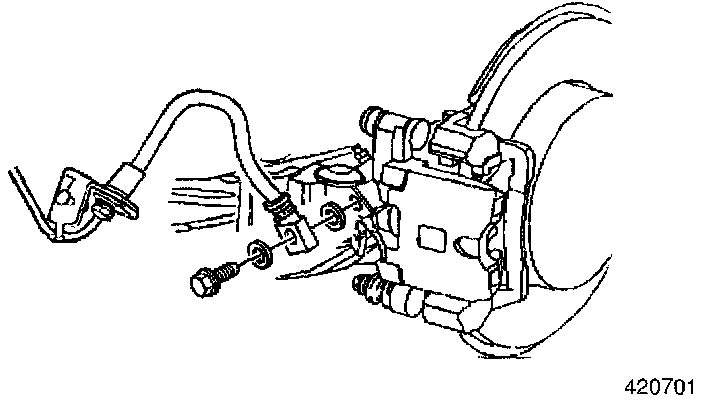 The following procedure provides instructions for inspecting the bolt that attaches the RIGHT rear brake hose to the brake caliper, and if necessary, bleeding the right rear brake.Inspection