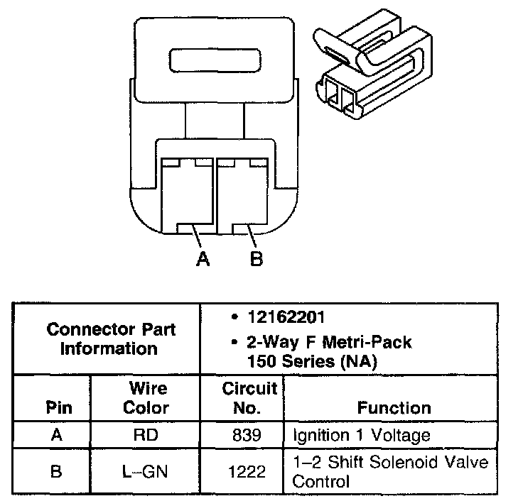 1-2 Shift Solenoid Valve Connector, Wiring Harness Side: