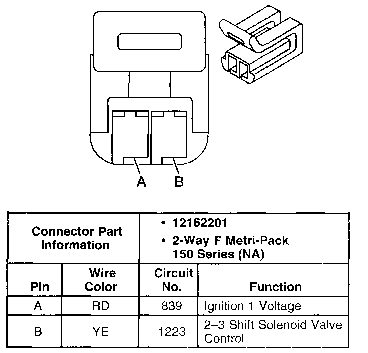 2-3 Shift Solenoid Valve Connector, Wiring Harness Side:
