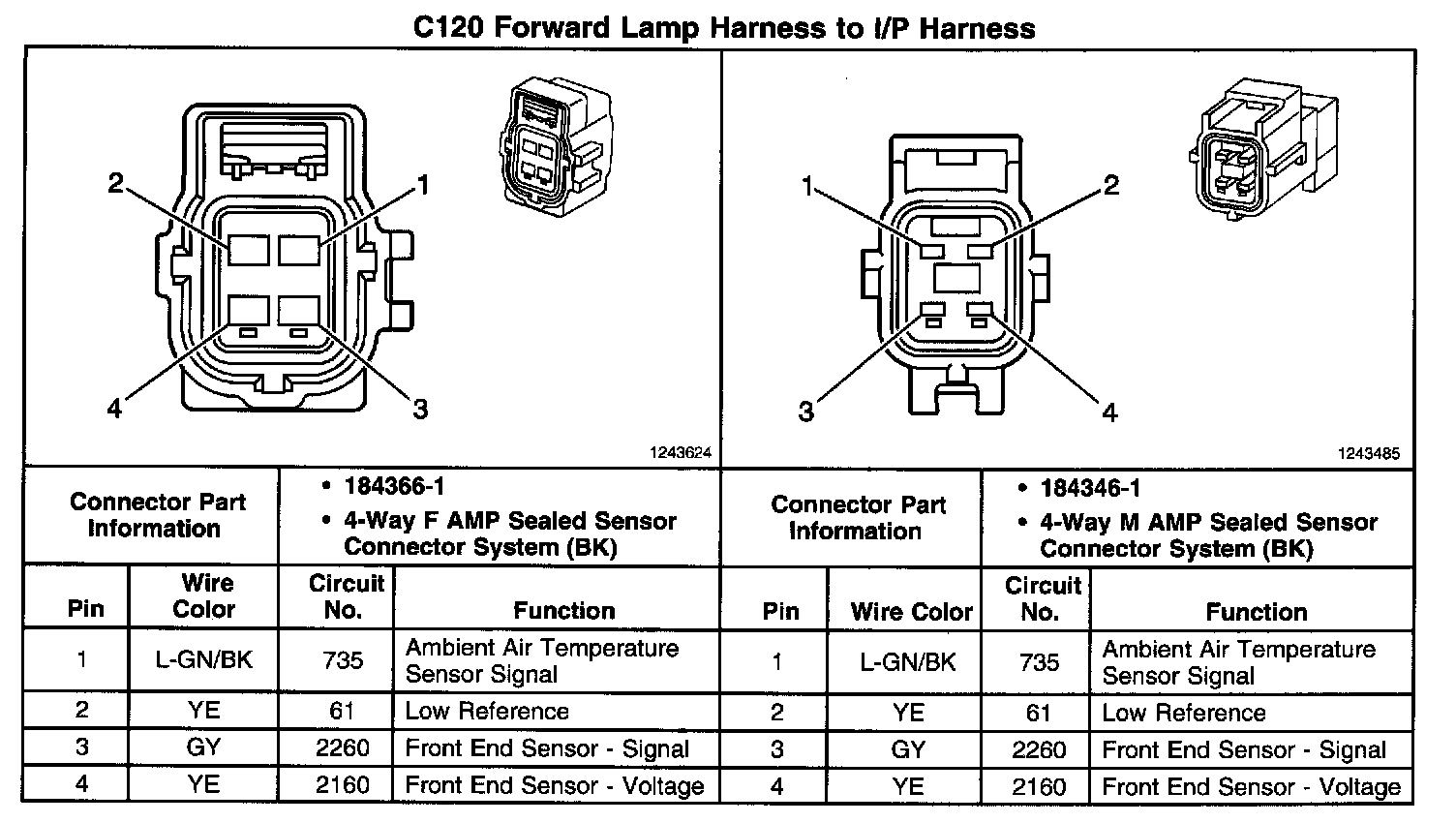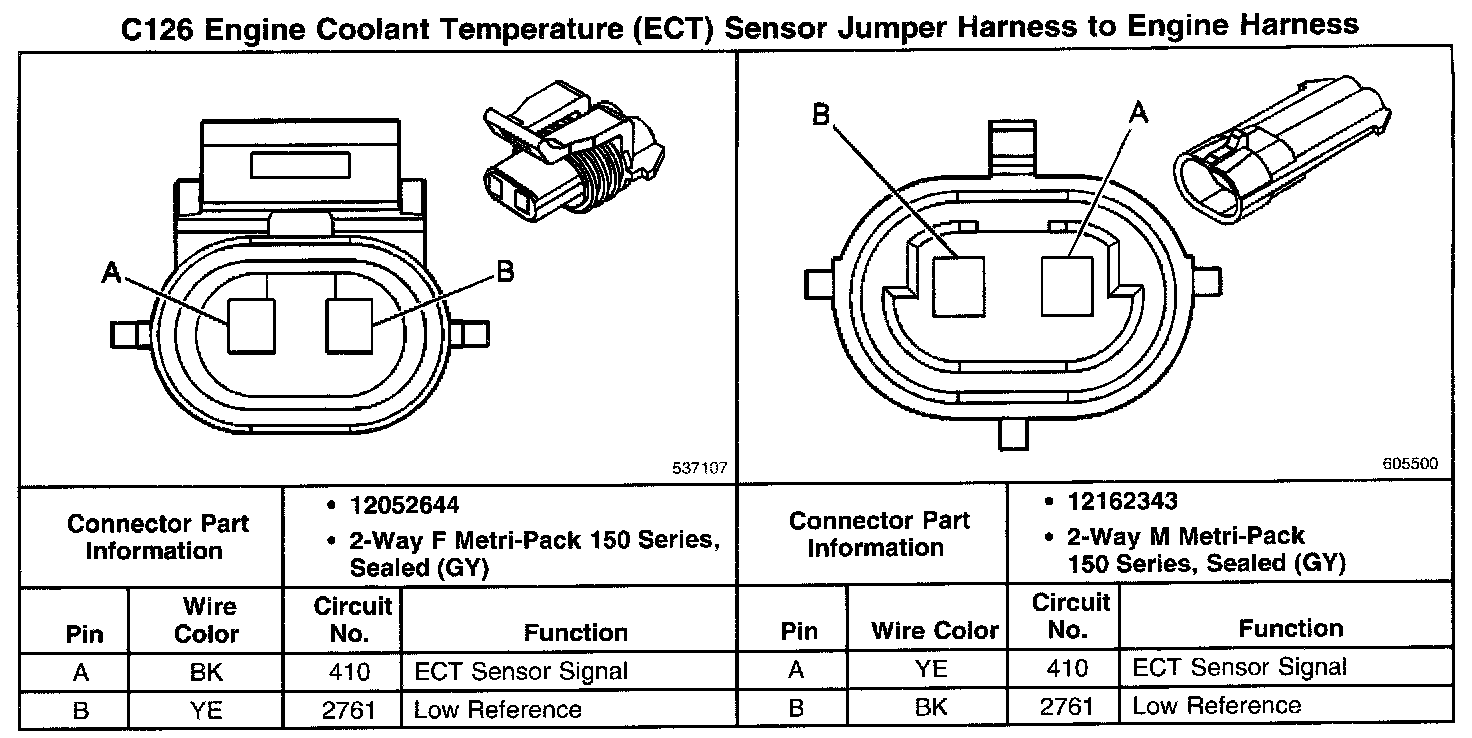 C126 Engine Coolant Temperature (ECT) Sensor Jumper Harness To Engine Harness: