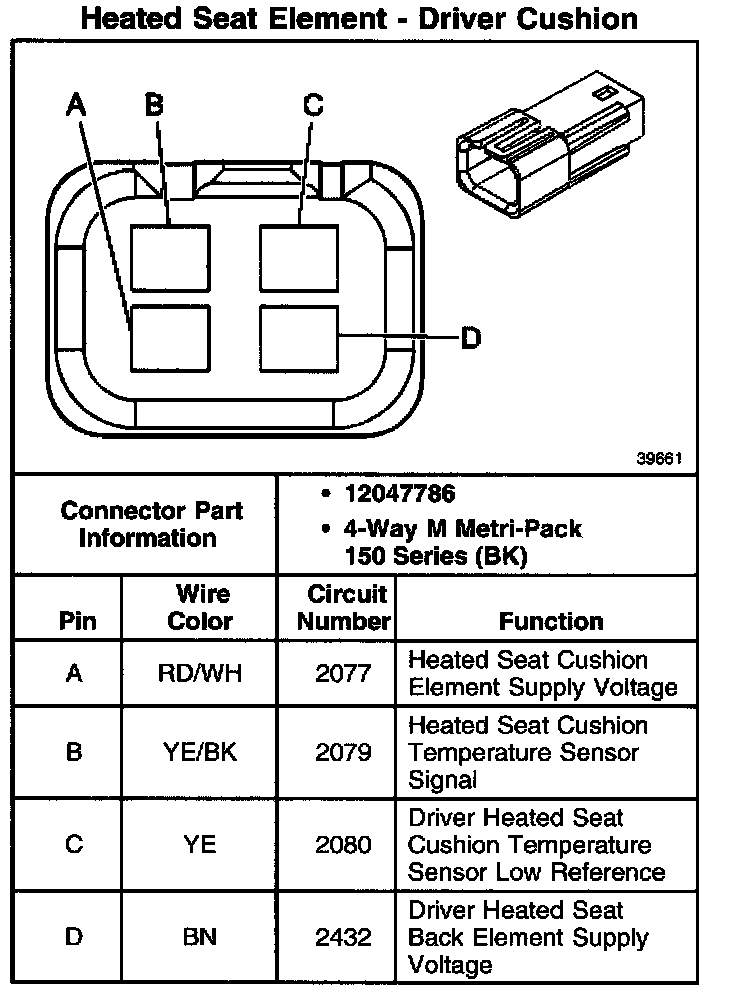Heated Seat Element - Driver Cushion: