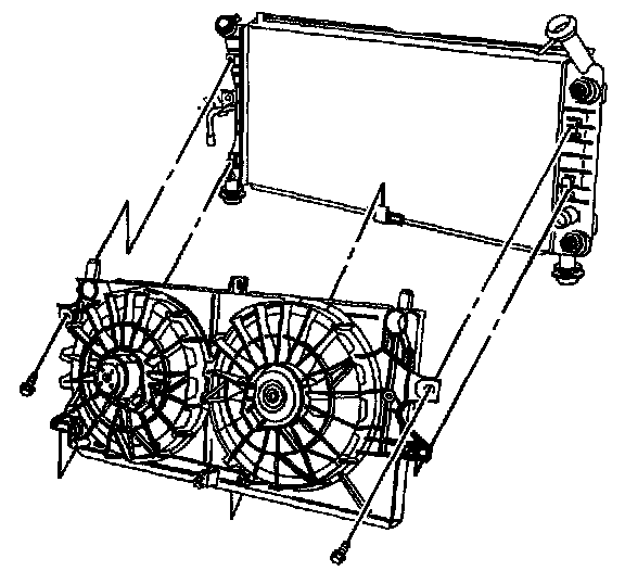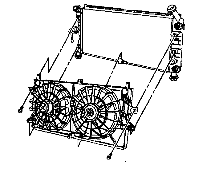 Important: Ensure the lower edge of the fan shroud engages the clip at the bottom of the radiator.