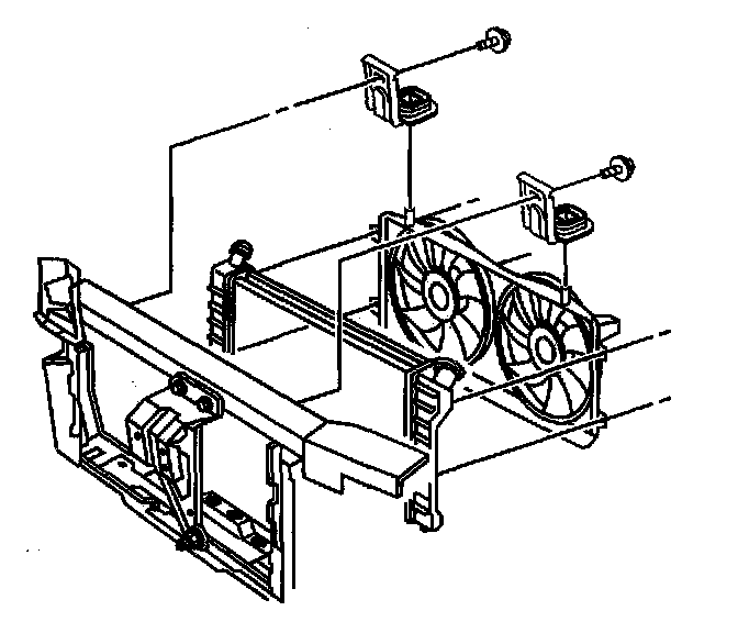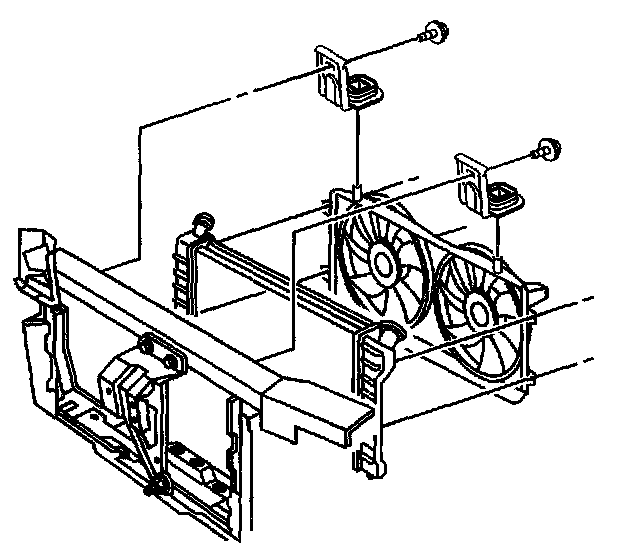 15. Install the radiator upper support brackets and bolts that connect to the fan shroud.
