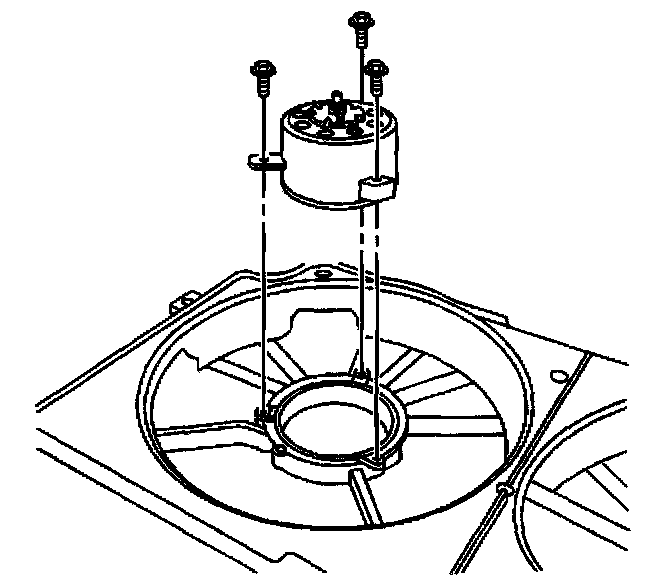 1. Install the right and left engine cooling fan motor to the fan shroud.