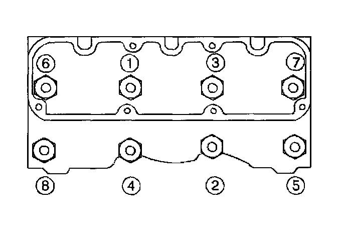 4.1. Tighten the cylinder head bolts (1-8) in the following sequence to 50 Nm (37 ft. lbs.).
