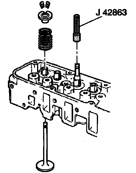 5. Use J 42863 to push the valve stem oil seal over the valve guide.