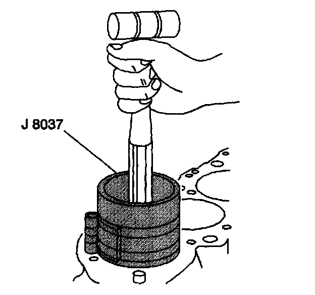 7. Use J 8037 to compress the piston rings for installation of the piston and connecting rod assembly.