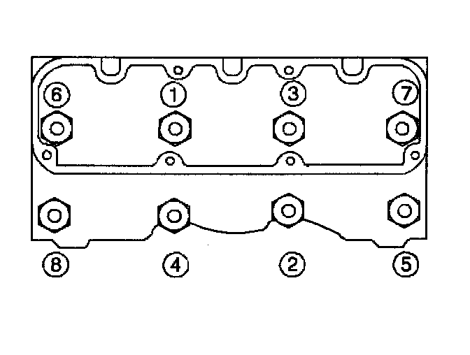 ^ Tighten the cylinder head bolts to 50 Nm (37 ft. lbs.) in sequence. Using J 45059 rotate each cylinder head bolt an additional 120°.