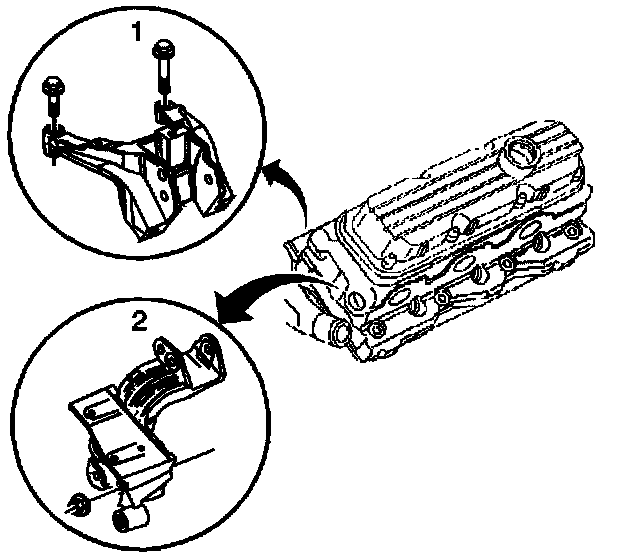 5. Install the engine mount strut bracket and nuts (2), if applicable.