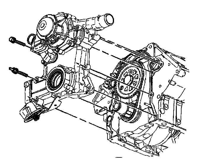 Important: The oil pan can be dropped slightly for engine front cover clearance if all pan bolts are loosened and the oil level sensor is removed.