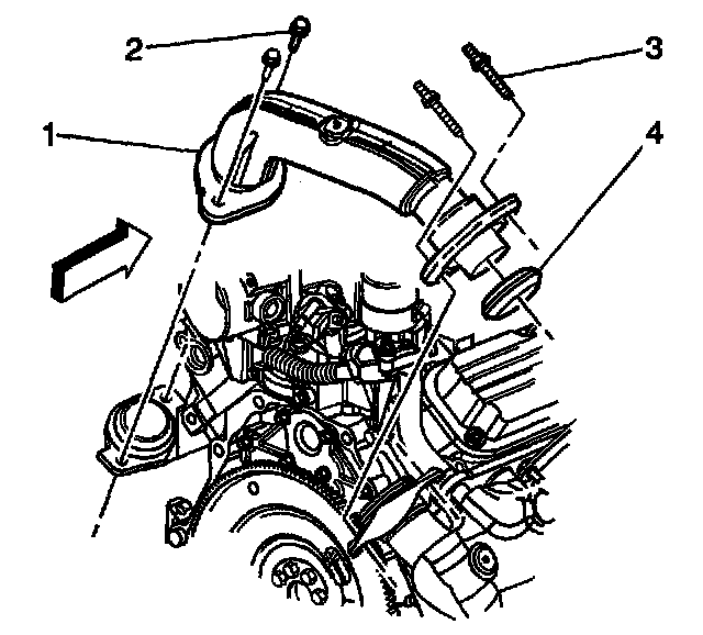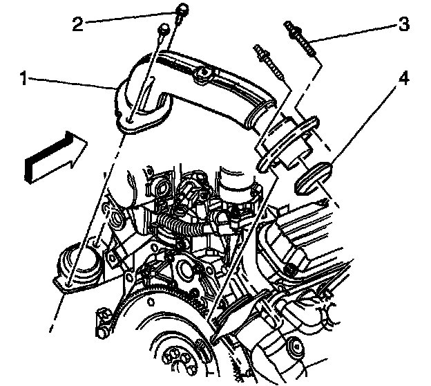 1. Install the exhaust crossover pipe seal (4) to the exhaust crossover pipe (1) at the right exhaust manifold connection.