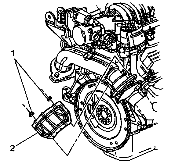4. Remove the exhaust crossover heat shield (2).