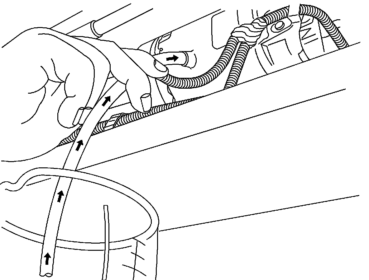 20. Connect a 228.6 mm-304.8 mm (9 in - 12 in) piece of 9/32 vacuum hose to the oil drain port and put the other end of the vacuum hose in the previously measured oil and allow the vacuum from the ACR2000 machine to draw the oil into the compressor.