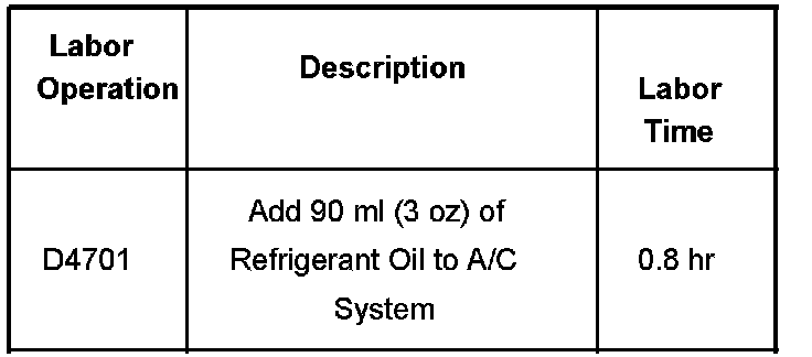 12. In a clean graduated oil measuring cup, pour 90 ml (3 oz) of new Universal Air Conditioner Compressor Oil, P/N 12378526 (in Canada, 88900060), PLUS the amount of oil recovered by the ACR2000 machine.