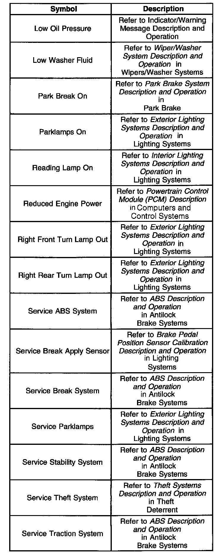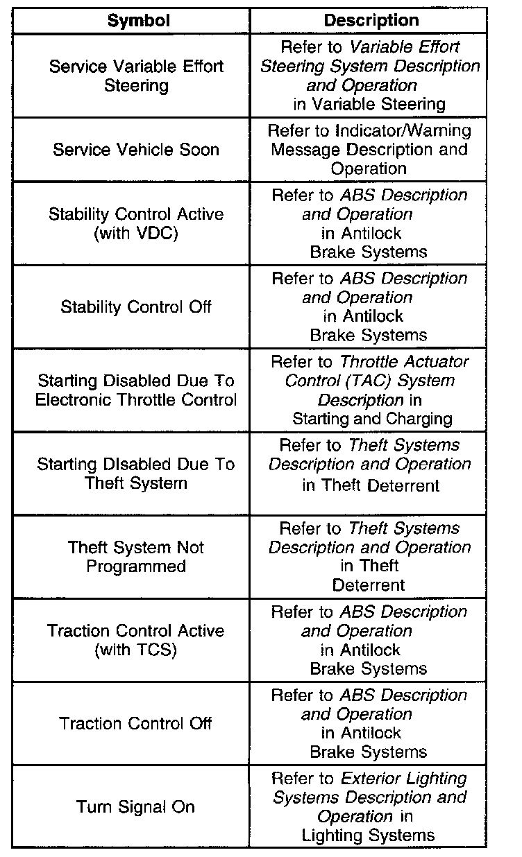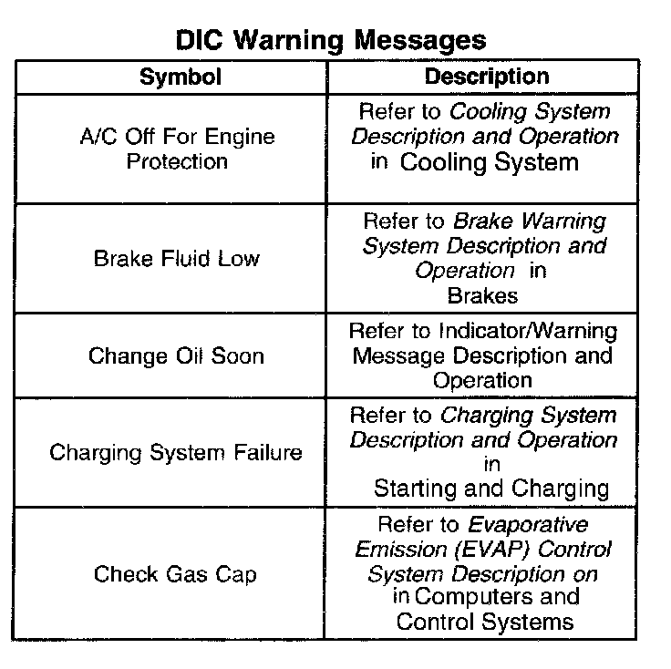 The DIC illuminates the SERVICE VEHICLE SOON indicator when the powertrain control module (PCM) detects certain malfunctions that are not related to the emissions system The DIC receives a class 2 message requesting illumination from the PCM.
