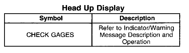 The head up display (HUD) illuminates the CHECK GAGES indicator The HUD receives a message requesting illumination from the IPC The HUD illuminates the CHECK GAGES indicator when the IPC illuminates any of the following indicators: