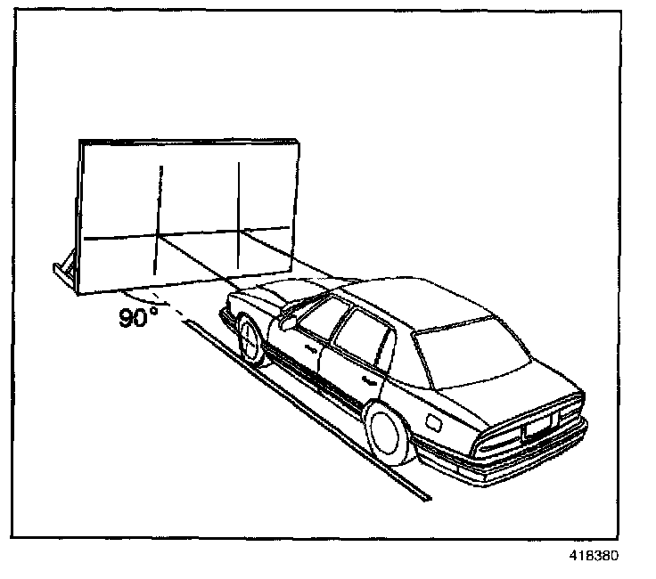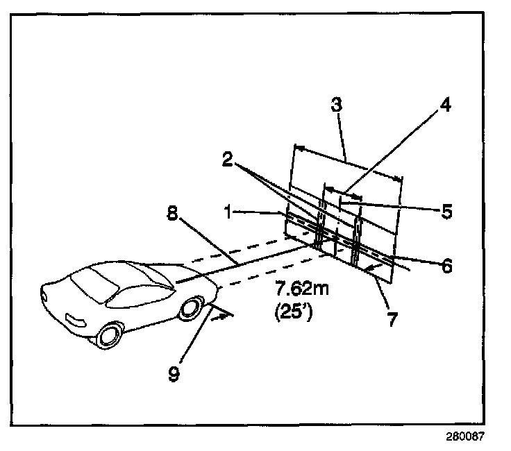- After the aiming screen has been set up in its permanent location, it is necessary to paint a reference line on the floor directly under the lens of the lamps to indicate the proper location of the headlamps when they are being aimed: