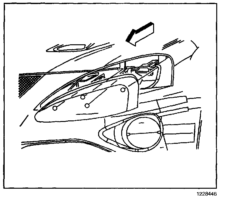 3. Pull the headlamp assembly outward enough to release the headlamp assembly from the upper fascia support.
