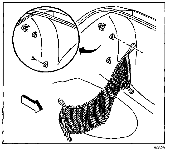 9. Install the rear compartment convenience net to the wingnuts, if equipped.