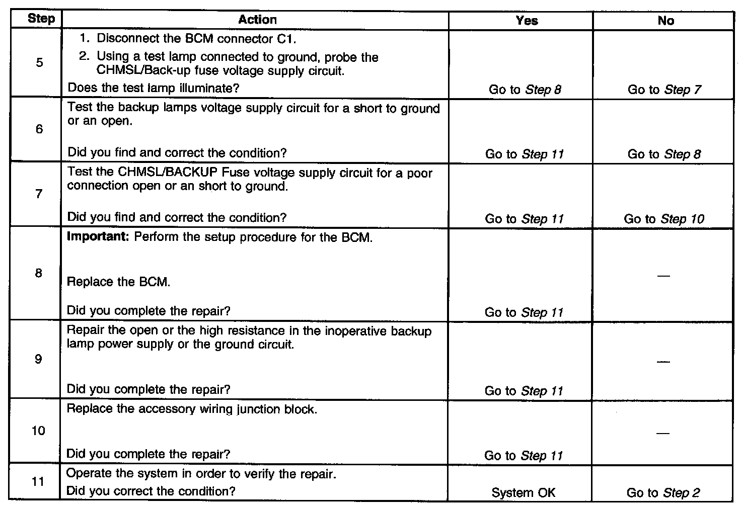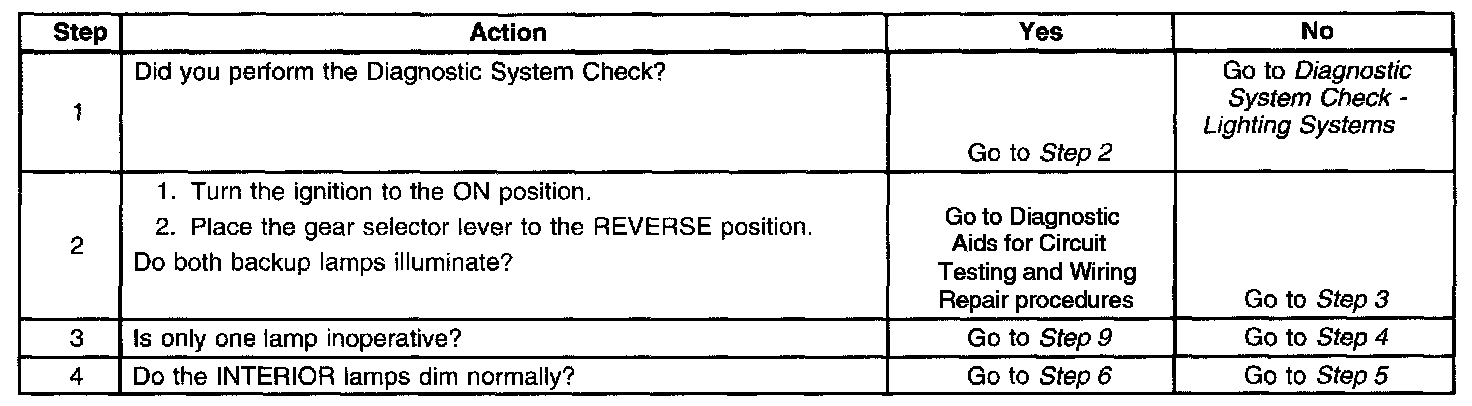 Backup Lamps Inoperative