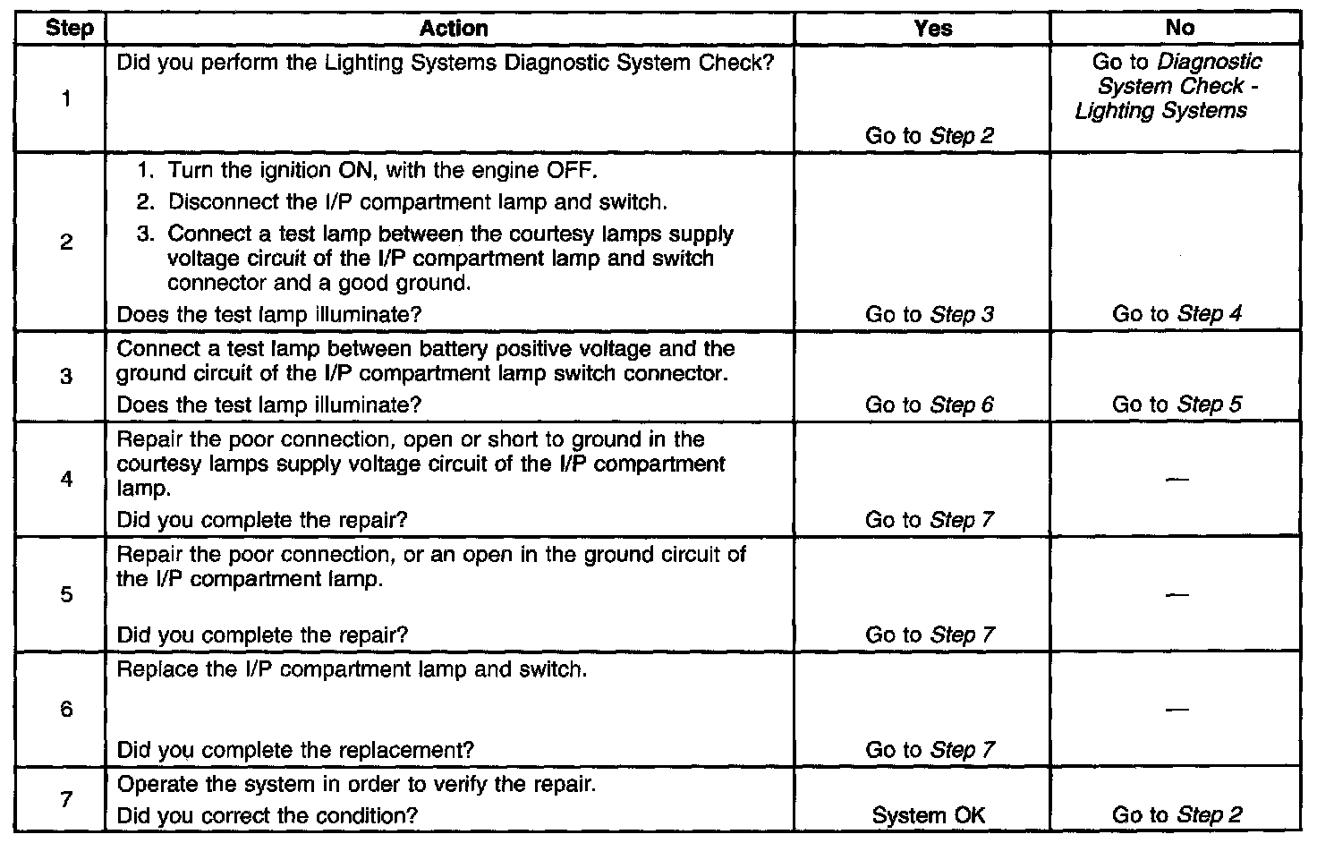 Instrument Panel (I/P) Compartment Lamp Inoperative
