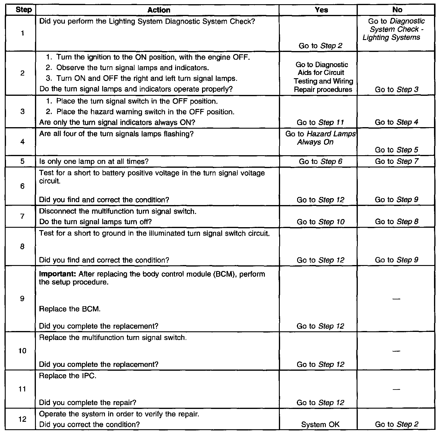 Turn Signal Lamps and/or Indicators Always On or Flashing