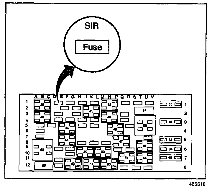 6. Locate and remove the SIR fuse from the underhood fuse center.