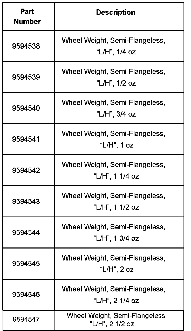 New "L/H" Wheel Weights For Semi-Flangeless Wheels