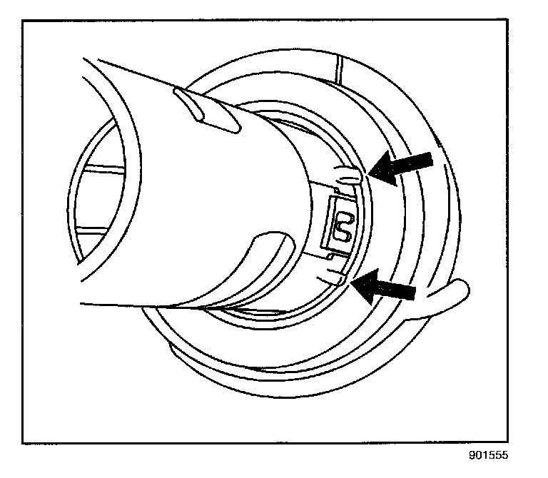 4. Align the tabs on the receptacle to the slots in the retainer. Install the accessory power receptacle by pressing into place until fully seated.