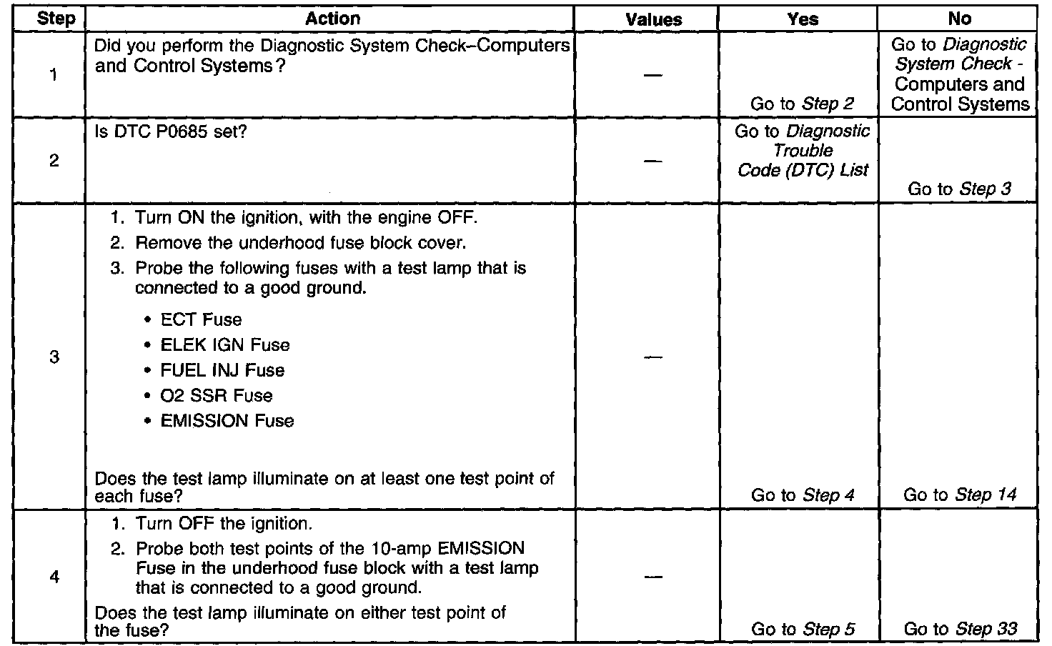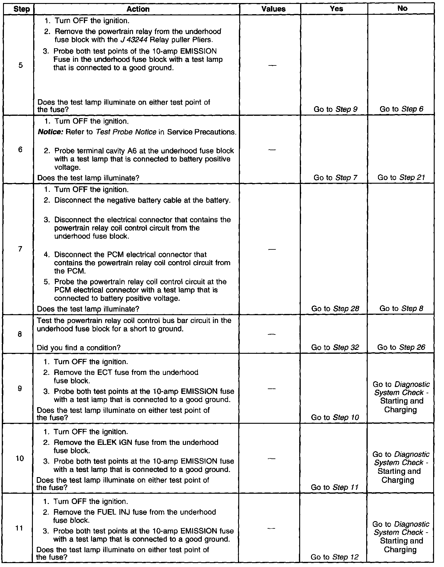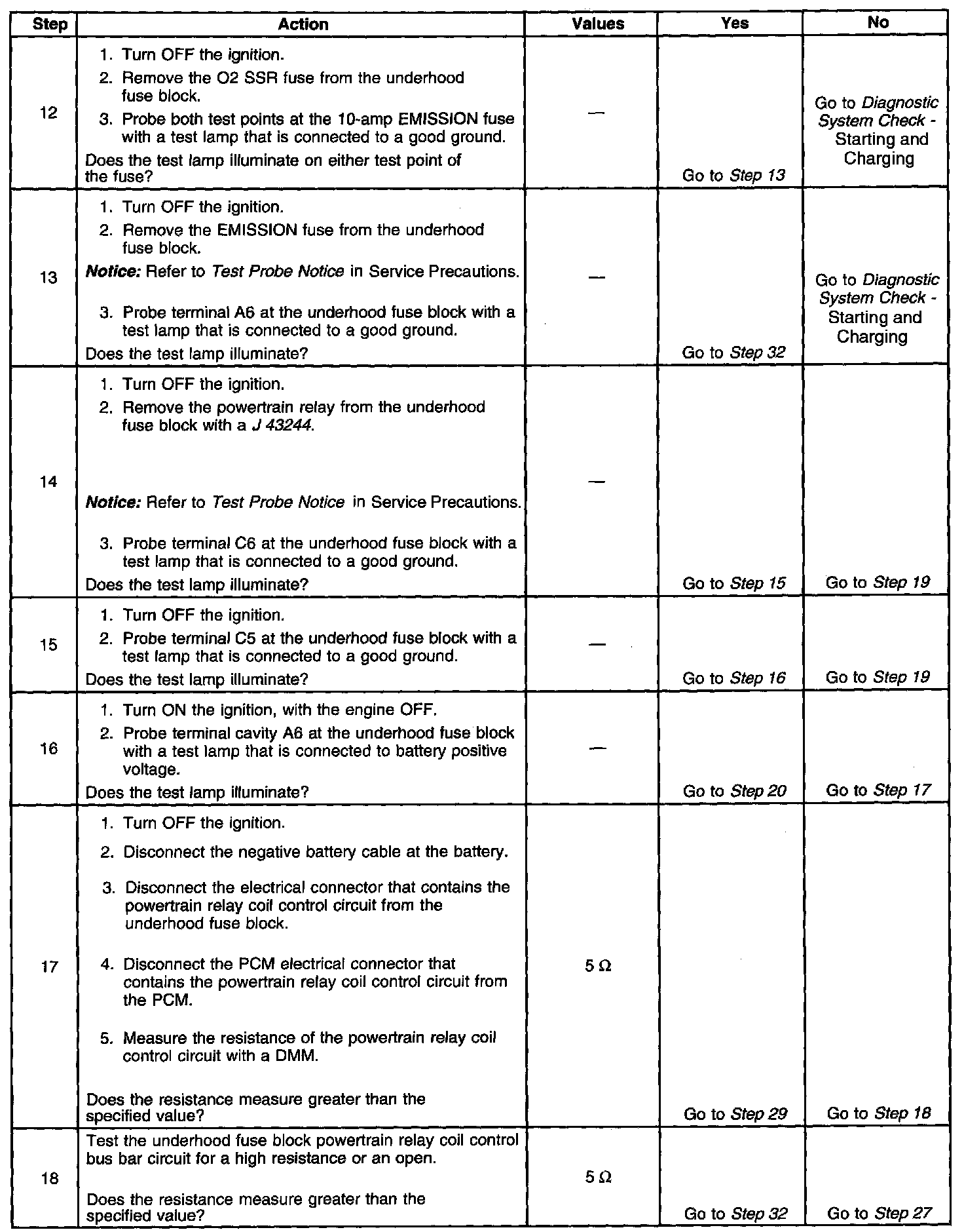 The powertrain relay system diagnosis table assumes that the vehicle battery is fully charged.
