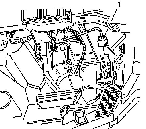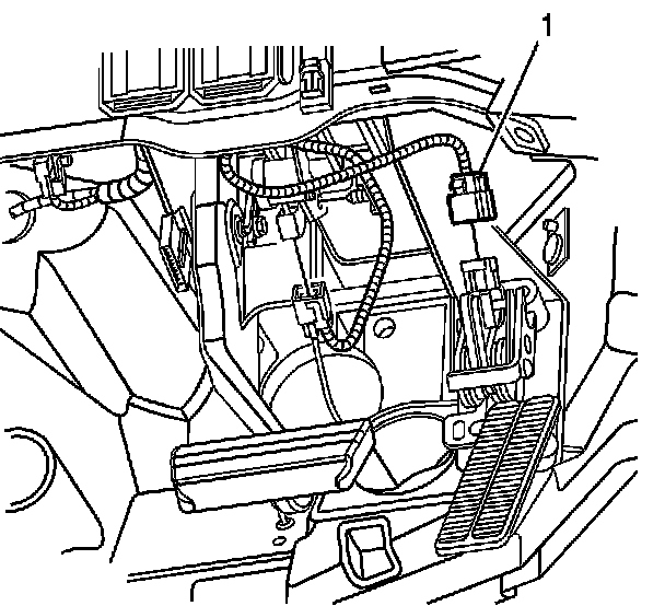 6. Disconnect the electrical connector (1) from the accelerator pedal sensor module.