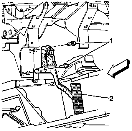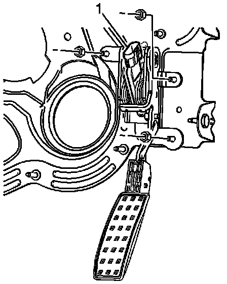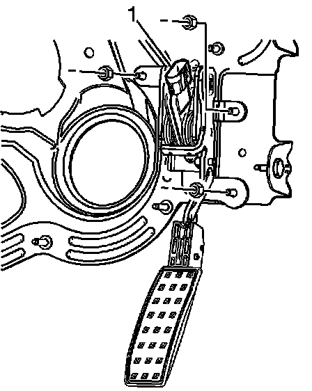 4. Connect the adjustable accelerator pedal cable (1) to the pedal assembly.